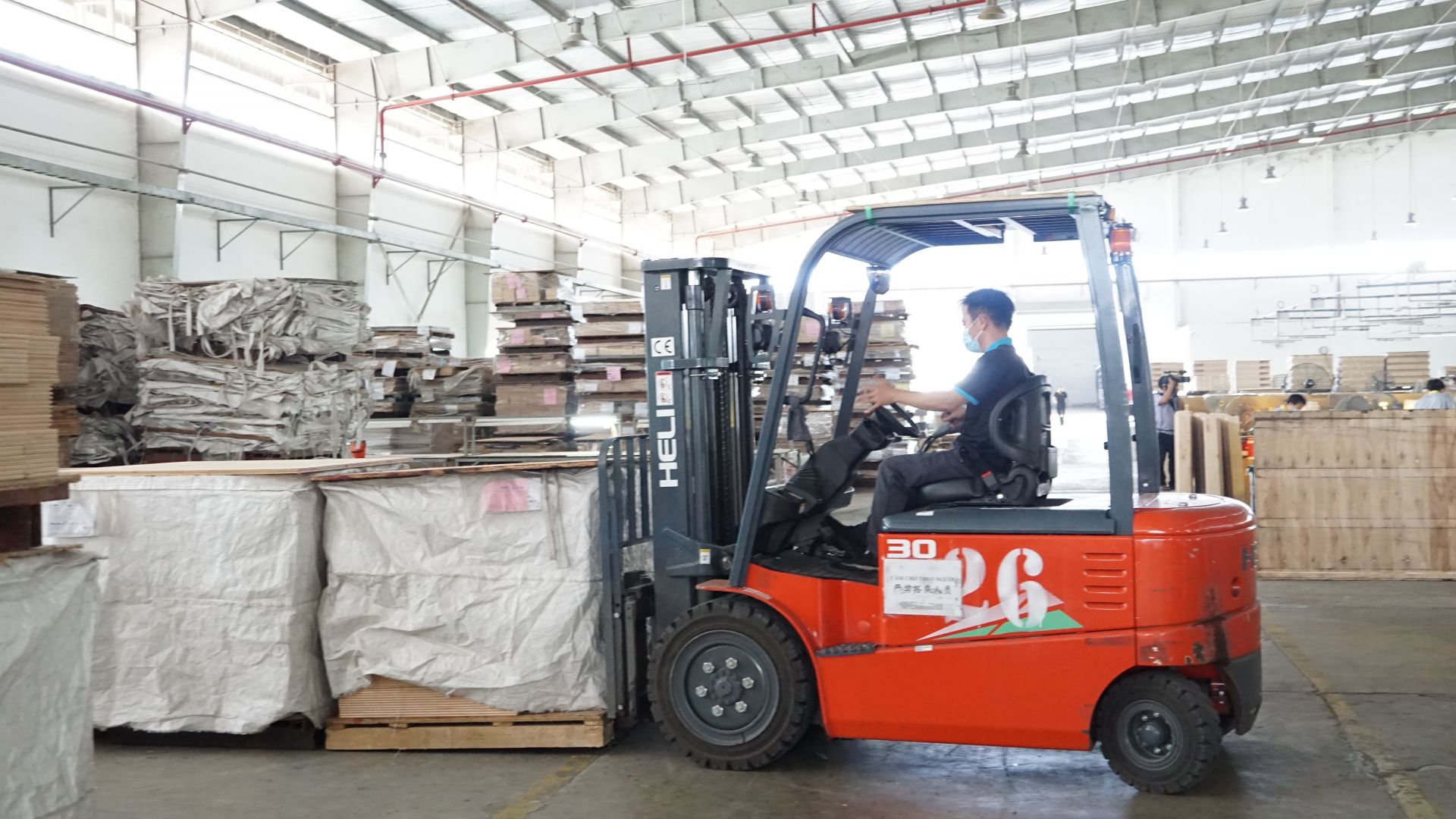 Công nhân vận chuyển sản phẩm gỗ tại một công ty chế biến gỗ trên địa bàn thị xã Trảng Bàng.