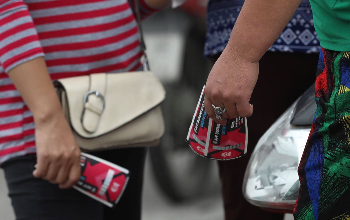 Vé trận Việt Nam - Malaysia ngày 16/11 có bốn mệnh, gồm 150.000, 200.000, 300.000 và 400.000 đồng. Theo VnExpress khảo sát, thoạt đầu mức chênh lệch giữa mệnh giá gốc với giá vé dân phe bán bán ra chỉ gấp khoảng 1,5 lần mỗi loại.