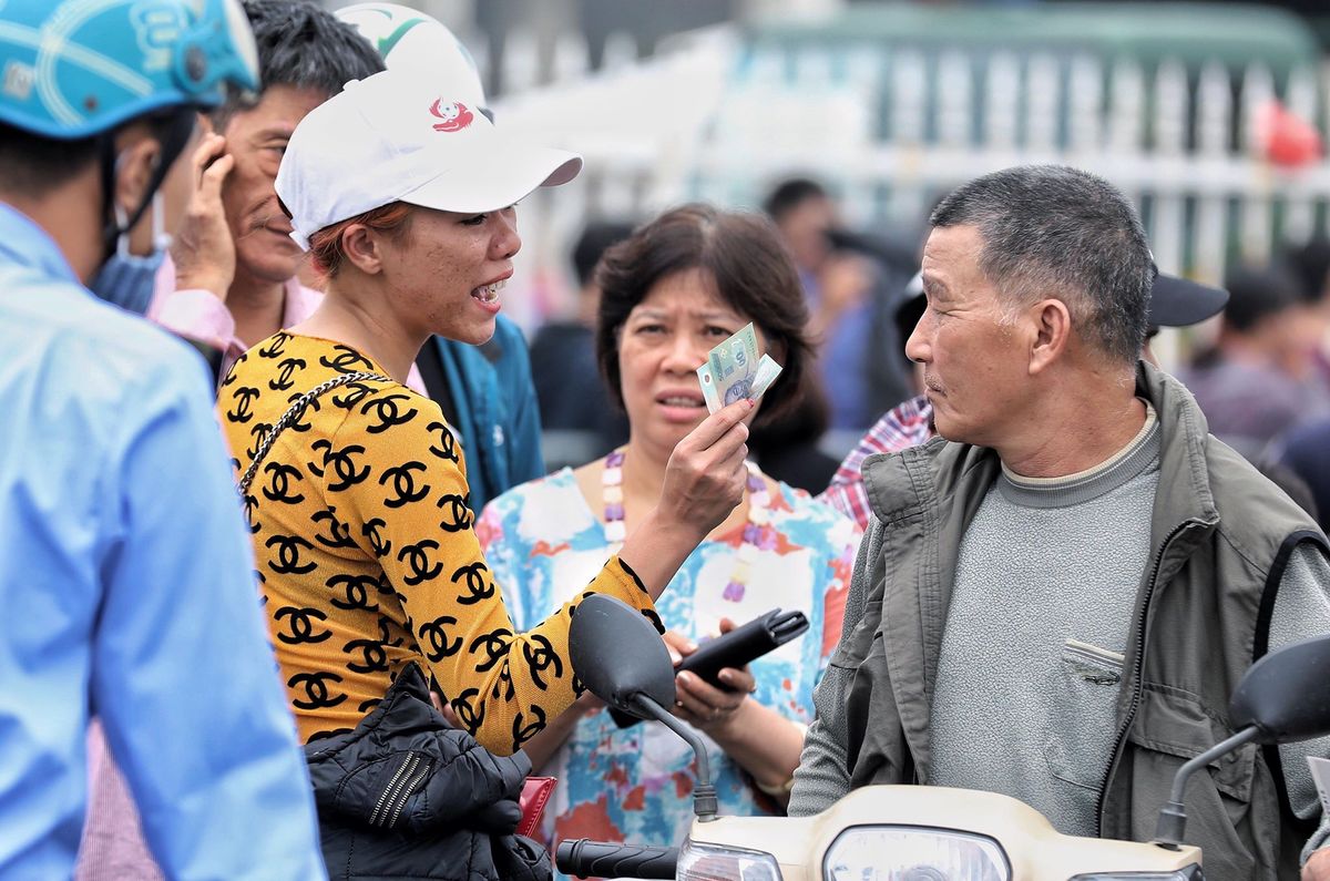 Nhưng càng gần trưa, khi người hâm mộ đổ đến sân nhiều hơn, mức giá chợ đen bắt đầu tăng chóng mặt. Cảnh dân phe cò kè, mặc cả và chèo kéo khách hàng diễn ra huyên náo suốt cả đoạn dài đường Lê Quang Đạo.