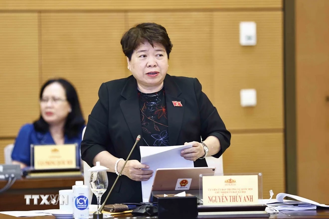 Chủ nhiệm Ủy ban Xã hội của Quốc hội Nguyễn Thúy Anh trình bày tóm tắt báo cáo thẩm tra. (Ảnh: Doãn Tấn/TTXVN)