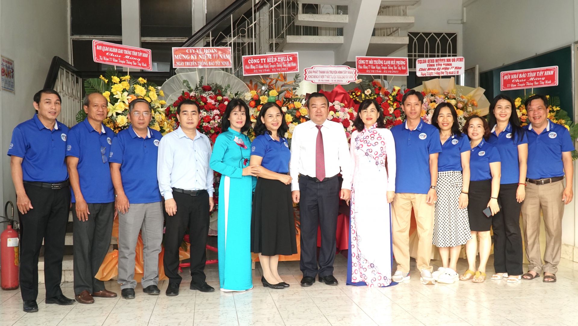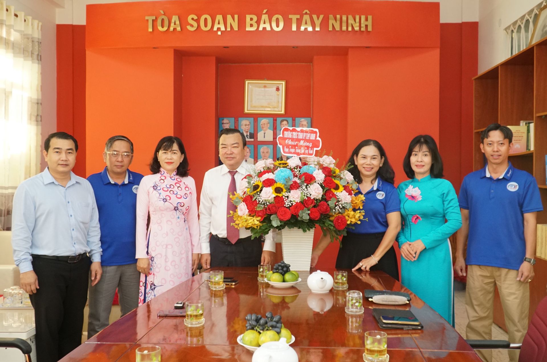 Lãnh đạo tỉnh chụp ảnh cùng Ban Biên tập và lãnh đạo các phòng Báo Tây Ninh.