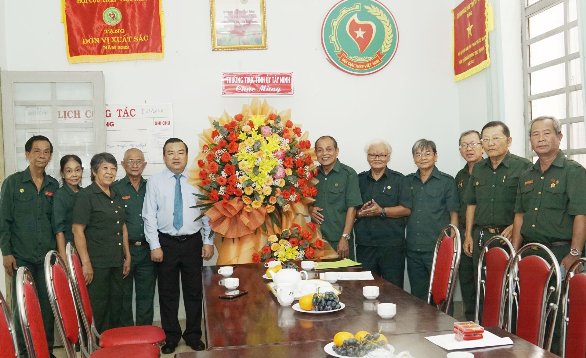 Phó Bí thư Thường trực Tỉnh uỷ Phạm Hùng Thái tặng hoa chúc mừng cán bộ, hội viên Hội Cựu TNXP tỉnh Tây Ninh.