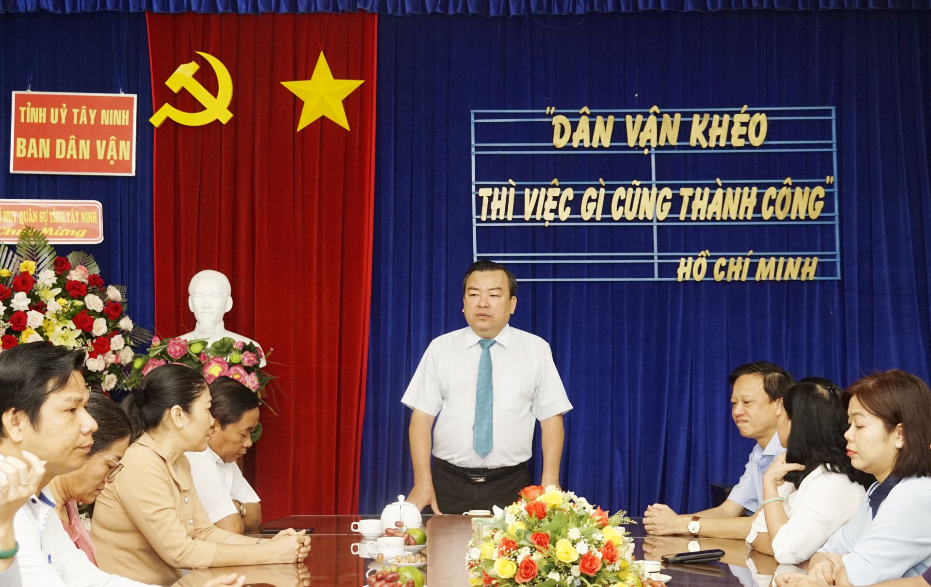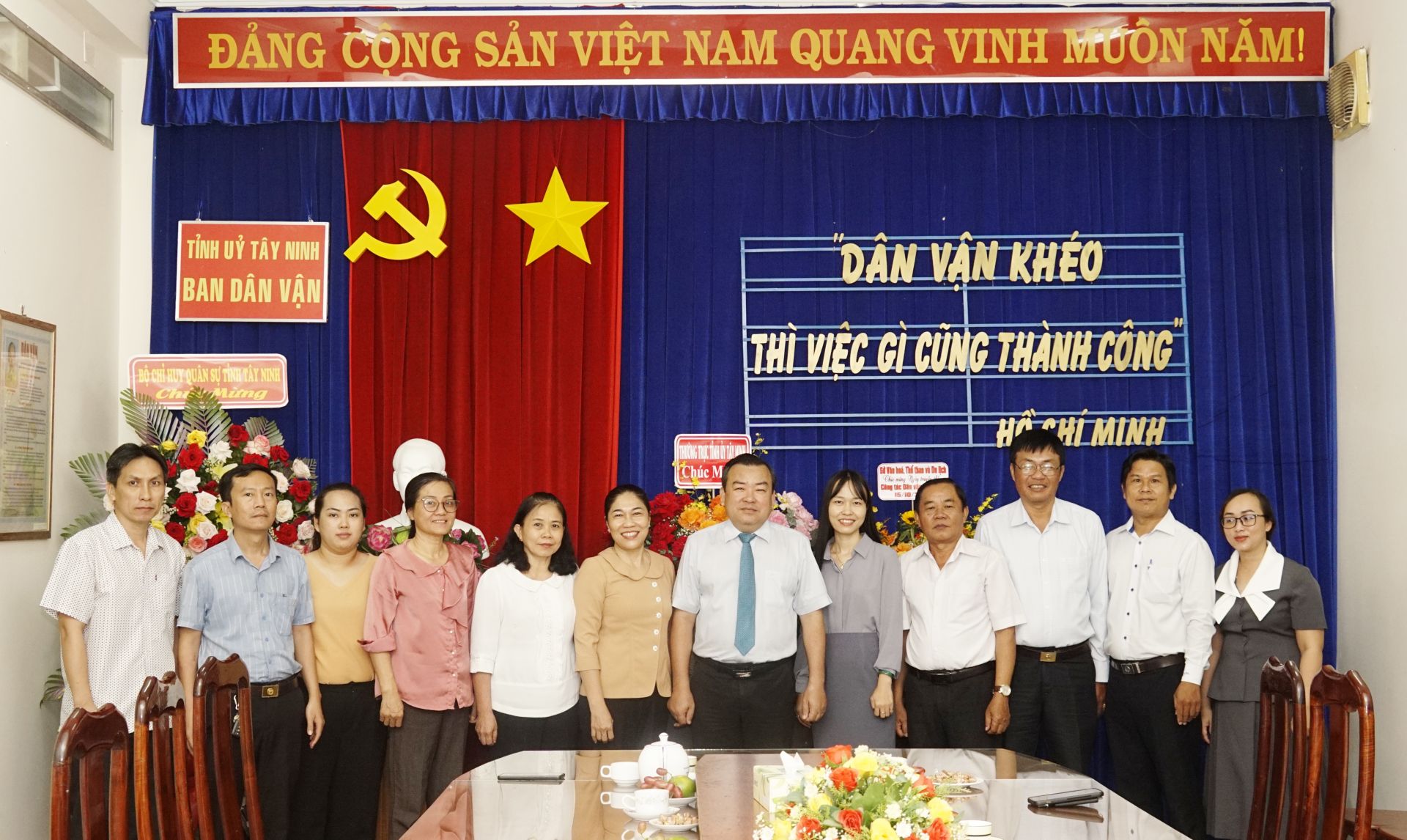 Sáng 15.10, Phó Bí thư Thường trực Tỉnh uỷ, Trưởng Đoàn ĐBQH tỉnh Tây Ninh Phạm Hùng Thái cùng lãnh đạo Văn phòng Tỉnh uỷ đến thăm, chúc mừng tập thể lãnh đạo, cán bộ, công chức Ban Dân vận Tỉnh uỷ nhân kỷ niệm 94 năm ngày truyền thống công tác Dân vận của Đảng (15.10.1930 – 15.10.2024).