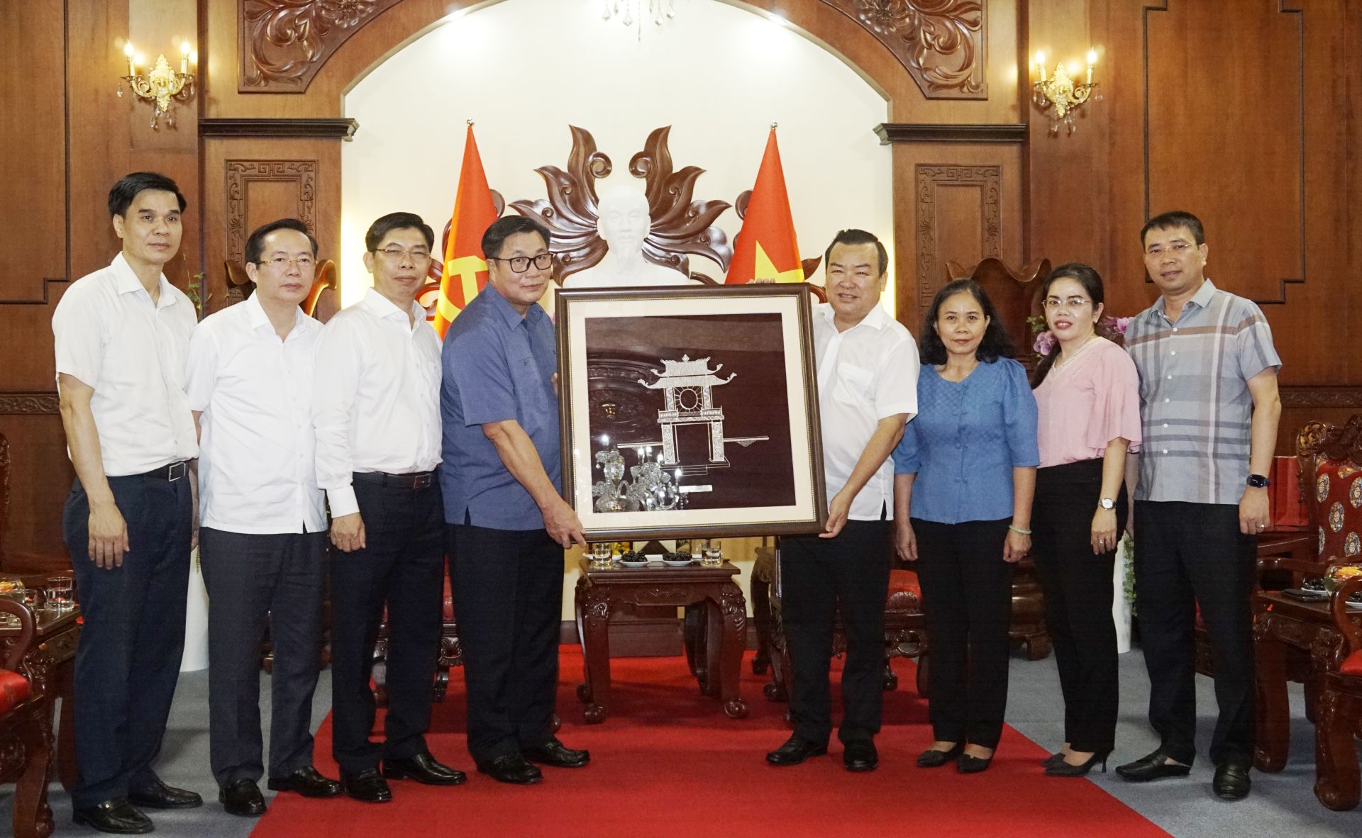 Đoàn công tác Quận uỷ Nam Từ Liêm tặng quà lưu niệm lãnh đạo Tỉnh uỷ Tây Ninh.