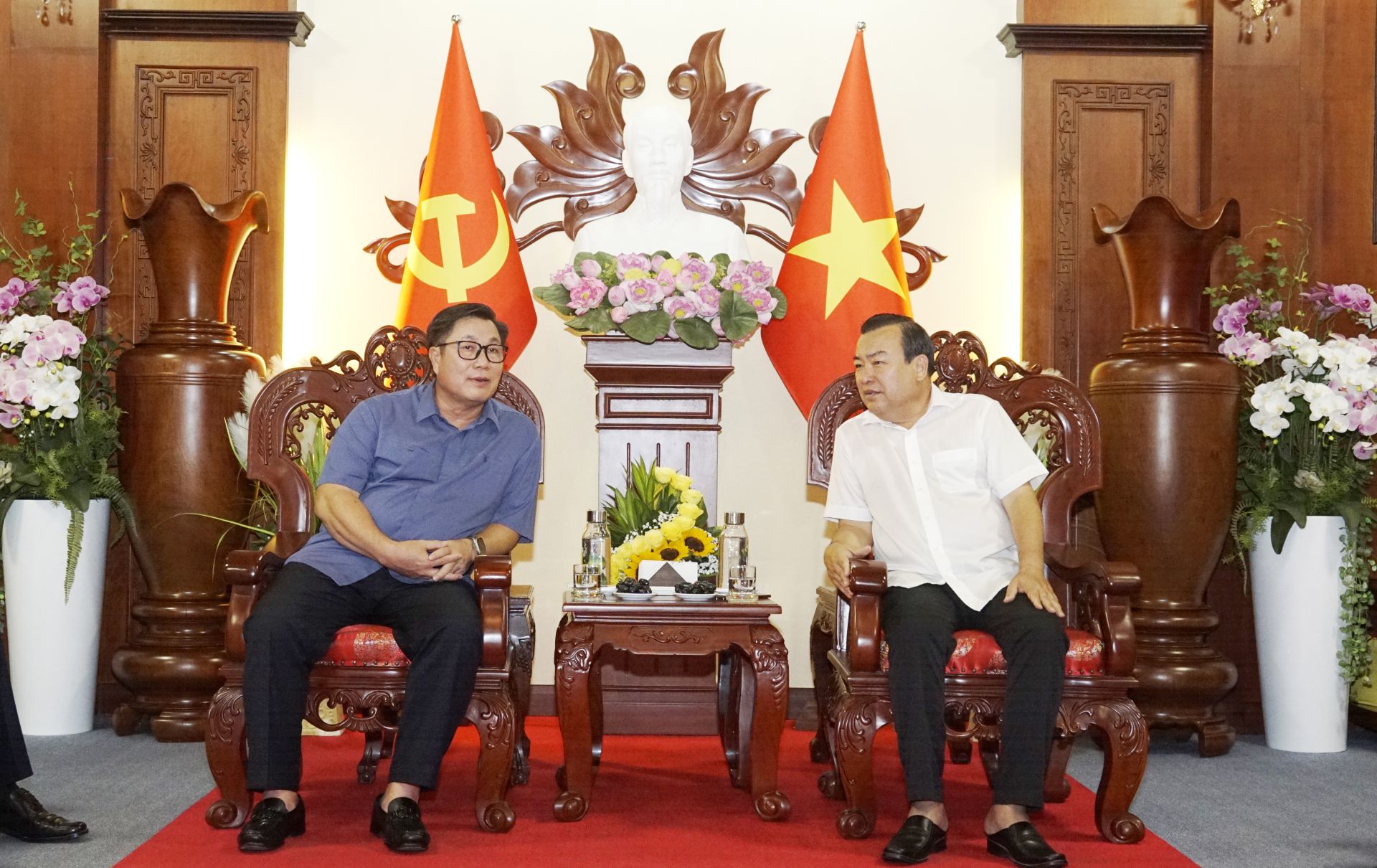 Phó Bí thư Thường trực Tỉnh uỷ Phạm Hùng Thái tiếp Bí thư Quận uỷ Nam Từ Liêm Nguyễn Quang Hiếu.