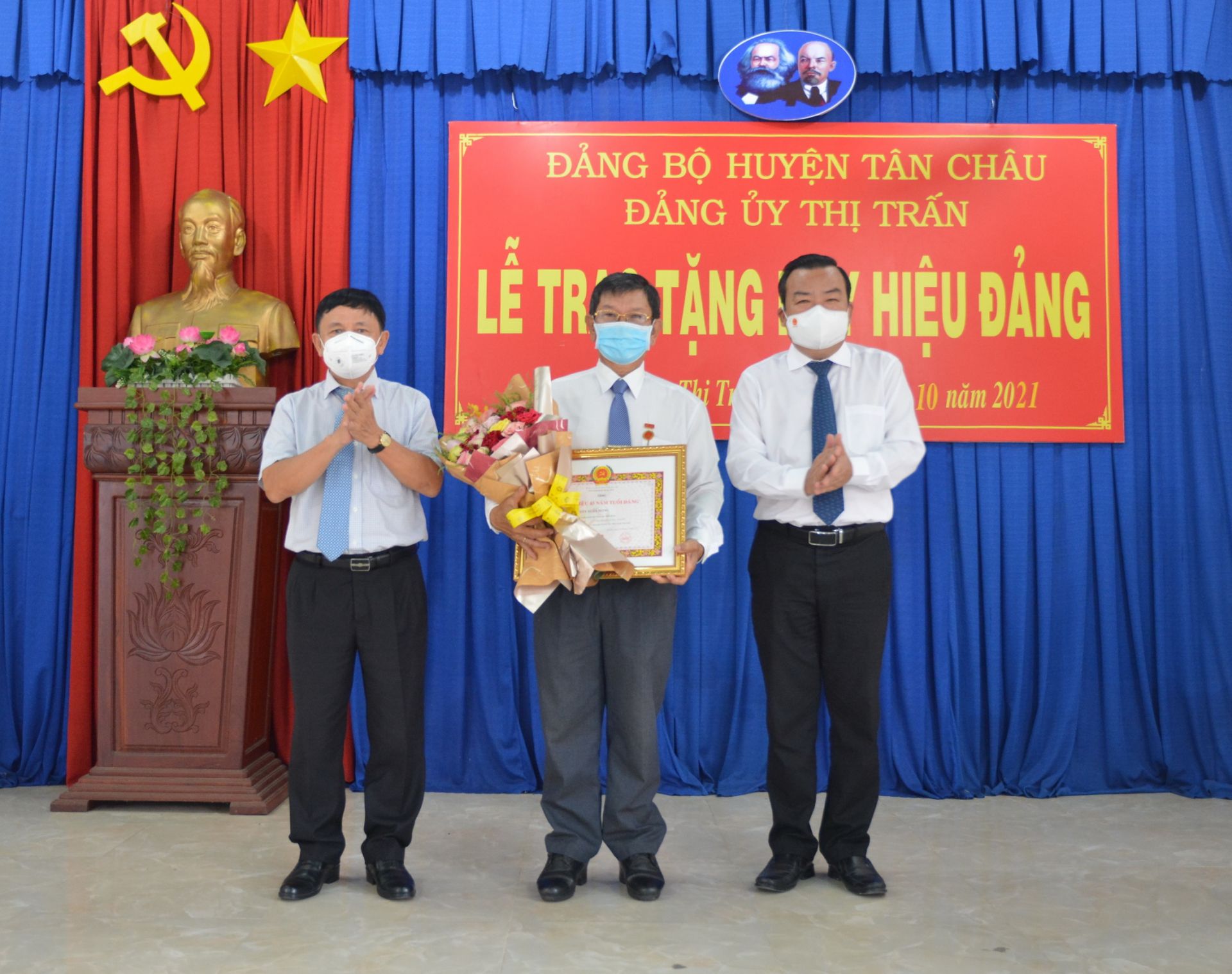 Chiều 6.10, Đảng uỷ, HĐND, UBND Thị trấn Tân Châu tổ chức lễ trao tặng Huy hiệu 45 năm tuổi Đảng đợt 2.9.2021. Đến dự có Phó Bí thư thường trực Tỉnh uỷ Phạm Hùng Thái, Chủ nhiệm Uỷ Ban kiểm tra Tỉnh uỷ Võ Văn Sớm, Phó Bí thư thường trực Huyện uỷ Tân Châu Võ Quốc Thắng.