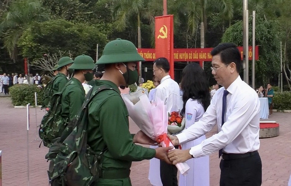 Đến dự có ông Nguyễn Mạnh Hùng- Phó Bí thư Tỉnh ủy; ông Trần Anh Minh- Giám đốc Sở Văn hóa, Thể thao và Du lịch; ông Huỳnh Thanh Phương- Bí thư Huyện ủy Gò Dầu; Thượng tá Trần Văn Toàn- Phó Chủ nhiệm Chính trị Bộ Chỉ huy Quân sự tỉnh; ông Nguyễn Văn Nhu- Chủ tịch UBND huyện, cùng lãnh đạo các ban, ngành huyện, xã và đơn vị nhận quân.