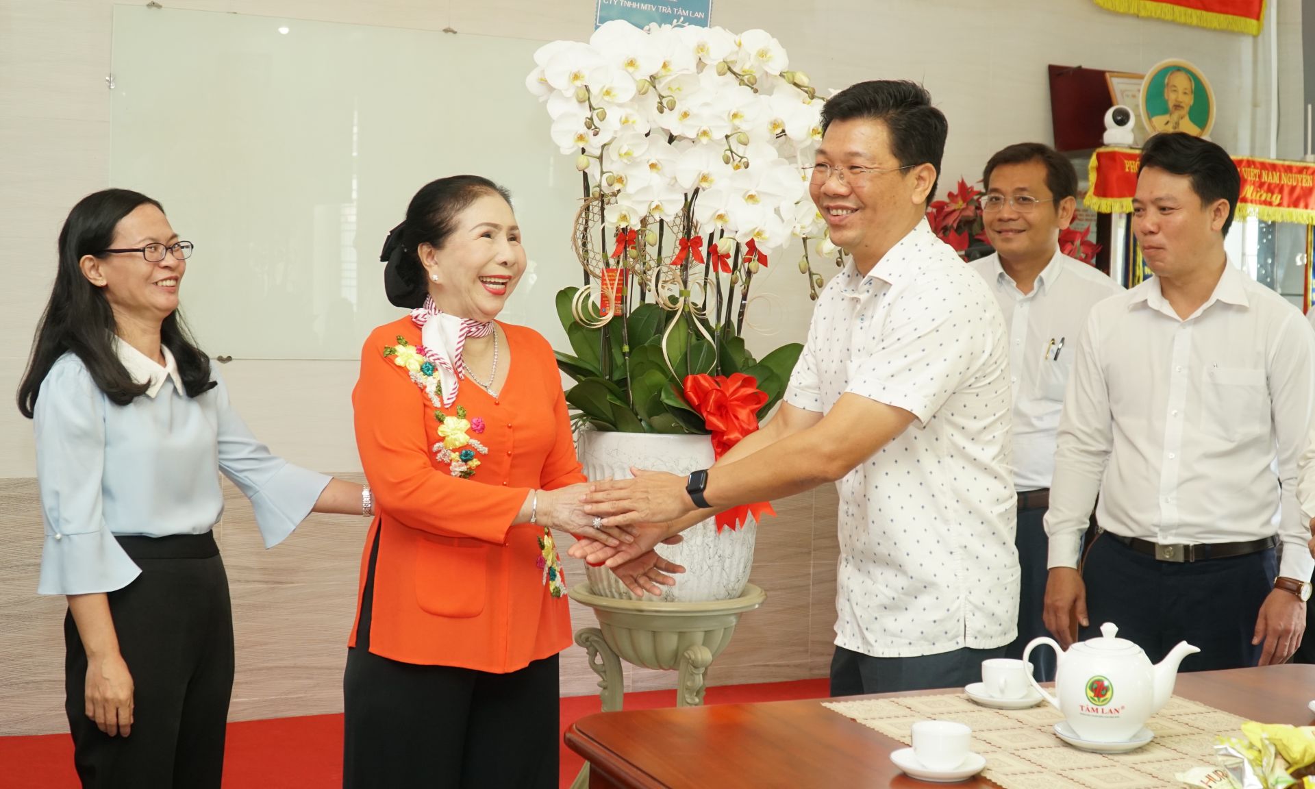 Phó Bí thư Tỉnh uỷ Nguyễn Mạnh Hùng chúc mừng Doanh nghiệp Trà Tâm Lan (huyện Dương Minh Châu) nhân Ngày Doanh nhân Việt Nam 13.10
