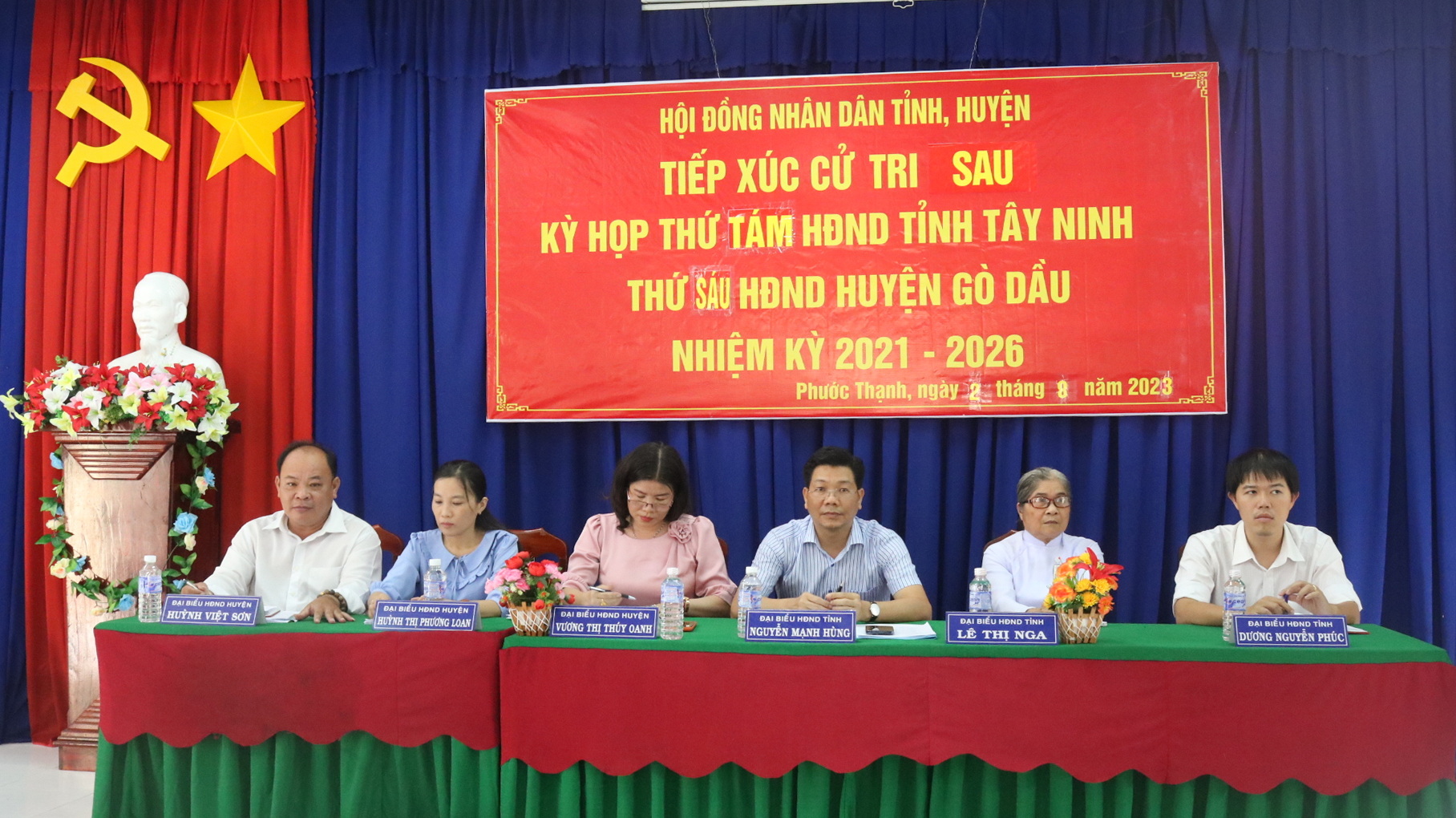 Chiều 2.8, ông Nguyễn Mạnh Hùng- Phó Bí thư Tỉnh ủy; bà Lê Thị Nga- Phó trưởng Ban Đại diện Đặc trách Nữ phái, Ban đại diện Hội thánh Cao Đài Tòa Thánh Tây Ninh; ông Dương Nguyễn Phúc- Viên chức, Ban quản lý dự án đầu tư xây dựng ngành giao thông tỉnh cùng Tổ đại biểu HĐND huyện Gò Dầu tiếp xúc cử tri trên địa bàn xã Phước Thạnh.