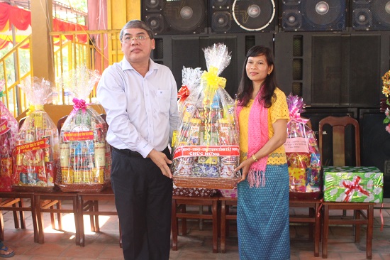 Dịp này, lãnh đạo tỉnh, huyện và các ngành trao tặng các phần quà cho đại diện bà con người Tà Mun tại ấp Tân Định 2.