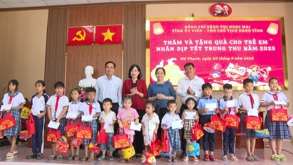 Phó Chủ tịch HĐND tỉnh Đặng Thị Ngọc Mai thăm hỏi, gửi lời chúc các em đón một Tết Trung thu trọn vẹn niềm vui và tình yêu thương. Bà đề nghị chính quyền địa phương quan tâm hơn nữa đến công tác bảo vệ, chăm sóc và giáo dục trẻ em, để mọi em nhỏ, đặc biệt là những trẻ em có hoàn cảnh khó khăn, đều được tạo điều kiện phát triển toàn diện.