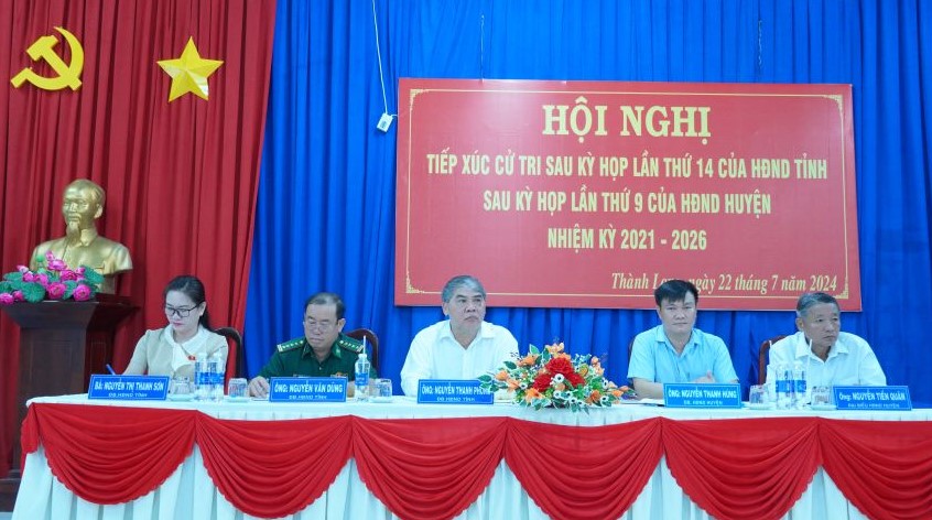 Sáng 22.7, ông Nguyễn Thanh Phong- Phó Chủ tịch HĐND tỉnh cùng tổ đại biểu số 9 HĐND tỉnh gồm Đại tá Nguyễn Văn Dũng- Phó Chính uỷ BĐBP tỉnh, bà Nguyễn Thị Thanh Sơn- Phó Trưởng ban Văn hoá - xã hội HĐND tỉnh cùng tổ đại biểu HĐND huyện Châu Thành có buổi tiếp xúc với cử tri xã Thành Long.