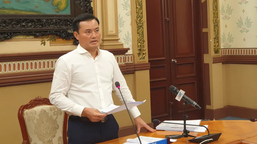 Ông Bùi Xuân Cường, Phó Chủ tịch UBND TP.HCM báo cáo tại hội nghị. Ảnh: NT
