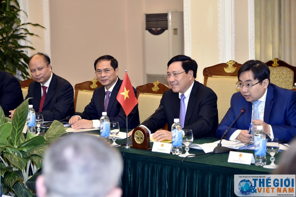 Phó Thủ tướng, Bộ trưởng Ngoại giao Phạm Bình Minh cho rằng, quan hệ hợp tác kinh tế thương mại giữa hai nước đang có những kết quả tốt và hai nước có đang có những điều kiện thuận lợi để đẩy mạnh hơn nữa trong thời gian tới. (Ảnh: Tuấn Anh)