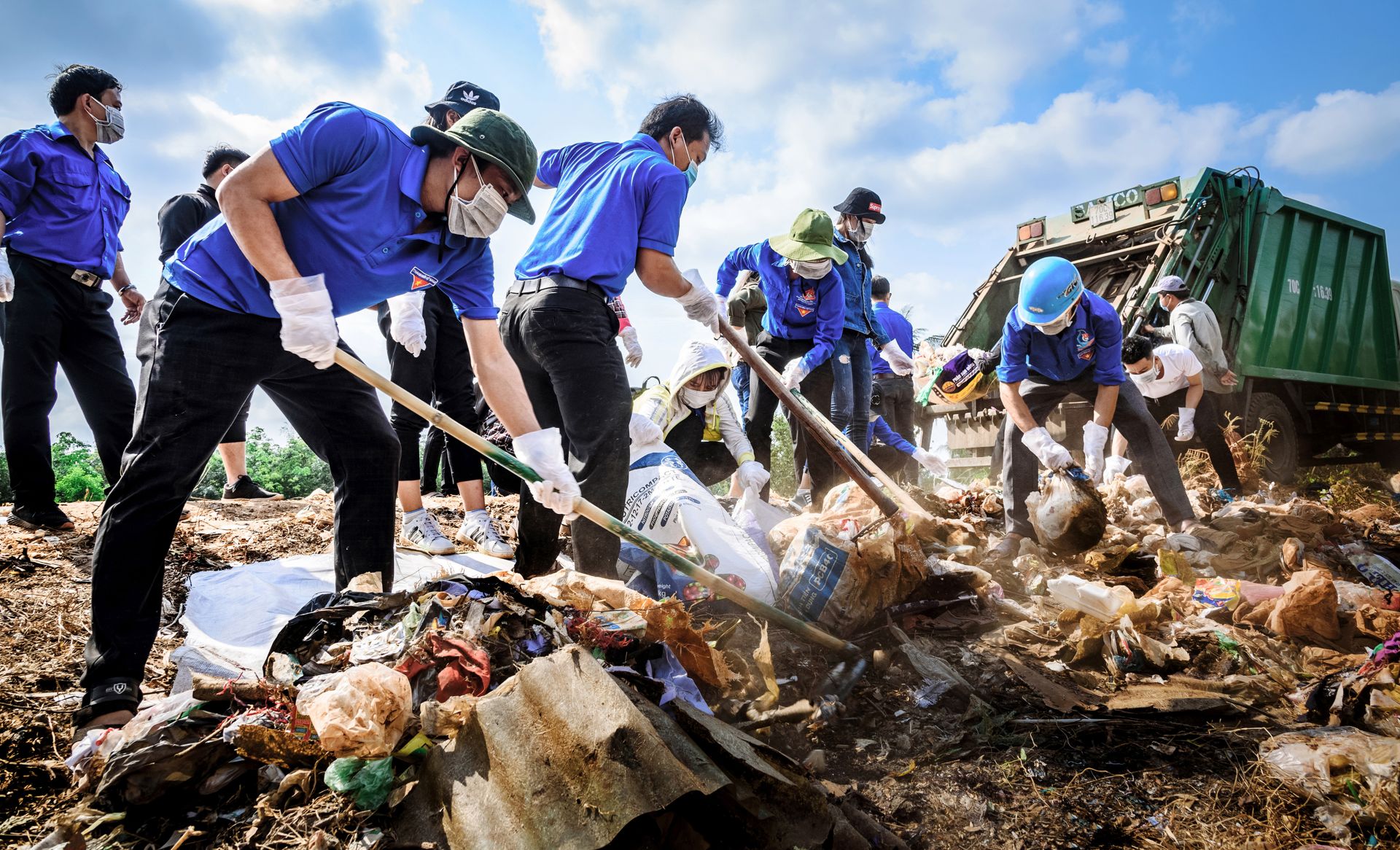 Tuổi trẻ Tân Châu gom rác bảo vệ môi trường. Ảnh: Ðức Kiên