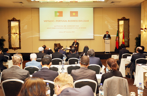Trong khuôn khổ chuyến thăm và làm việc tại Bồ Đào Nha, ngày 27/1, Phó Thủ tướng Vương Đình Huệ đã có buổi gặp gỡ với các lãnh đạo của 7 tập đoàn kinh tế của tư nhân và của Chính phủ Bồ Đào Nha- lực lượng đã tham gia tích cực vào cải tổ nền kinh tế từ sau khủng hoảng tài chính 2008- 2009.