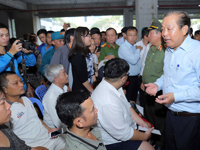 Tại đây, nhiều người dân phản ánh những bức xúc về chủ đầu tư liên quan đến PCCC tại CC... Tiếp nhận phản ánh của người dân, Phó thủ tướng giao cho UBND TP, UBND Q.8 phối hợp với chủ đầu tư nhanh chóng giải quyết những bức xúc của dân để ổn định cuộc sống. Sau đó, Phó thủ tướng đến bệnh viện thăm hỏi, động viên những nạn nhân đang điều trị; đến thắp hương, động viên gia đình có thân nhân gặp nạn.