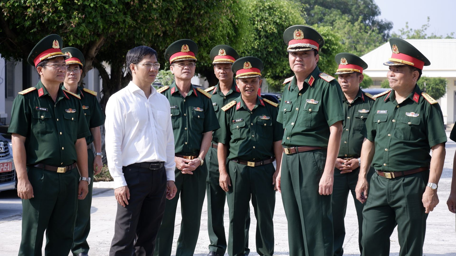 Lãnh đạo Quân khu 7 và Bí thư Tỉnh uỷ Tây Ninh trao đổi với Bộ chỉ huy Quân sự tỉnh về việc tiếp nhận và huấn luyện chiến sĩ mới.