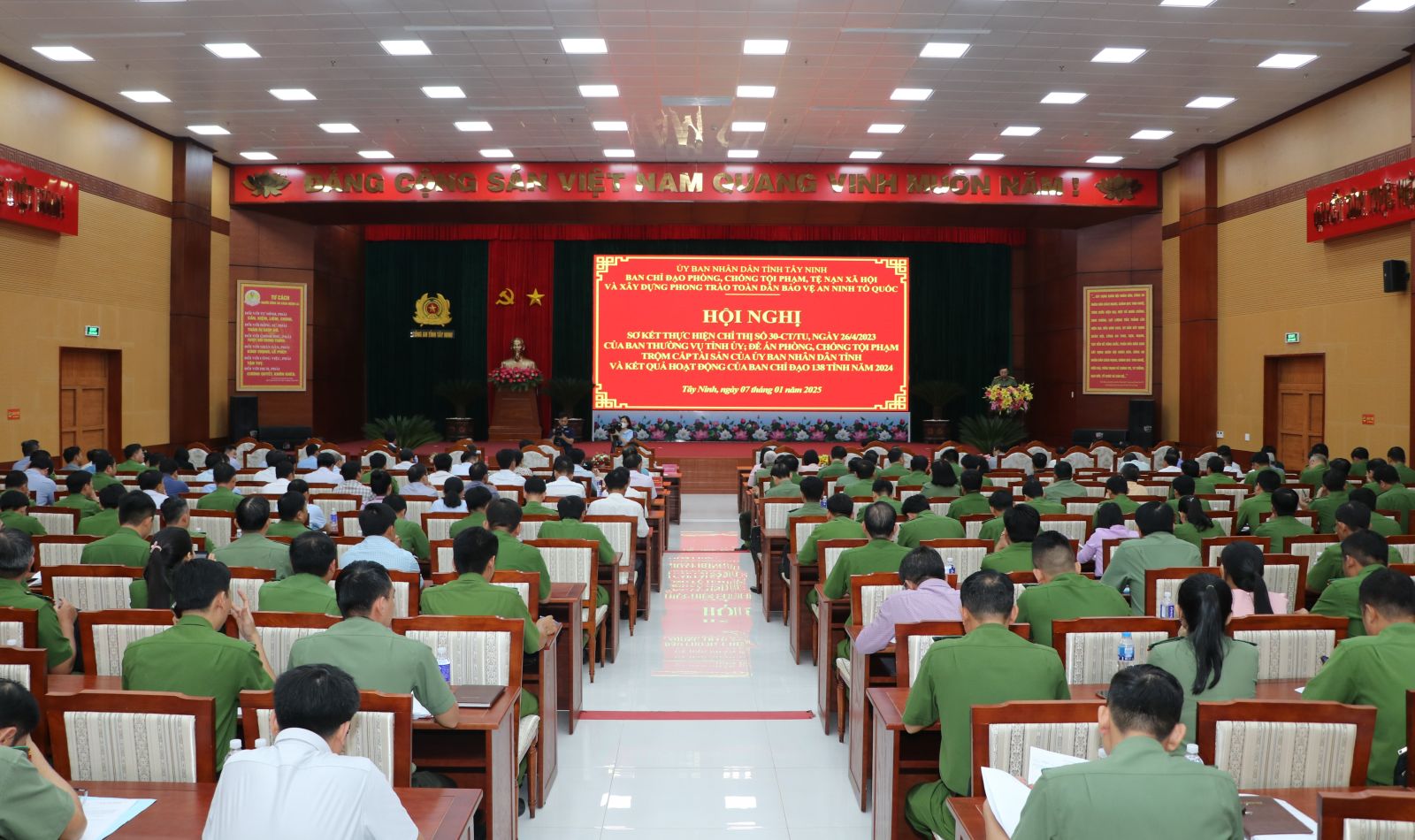 Ngày 7.1, Ban Chỉ đạo phòng, chống tội phạm, tệ nạn xã hội và xây dựng phong trào toàn dân bảo vệ an ninh Tổ quốc tỉnh (Ban Chỉ đạo 138 tỉnh) tổ chức hội nghị sơ kết thực hiện Chỉ thị số 30-CT/TU ngày 26.4.2023 của Ban Thường vụ Tỉnh uỷ; Đề án phòng, chống tội phạm trộm cắp tài sản và kết quả hoạt động của Ban Chỉ đạo 138 tỉnh năm 2024. Ông Nguyễn Hồng Thanh- Phó Chủ tịch Thường trực UBND tỉnh, Trưởng Ban Chỉ đạo 138 tỉnh chủ trì hội nghị.