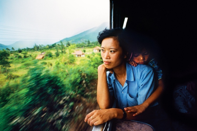 Cô gái Việt suy tư trên tàu Thống Nhất. Ảnh: Catherine Karnow.