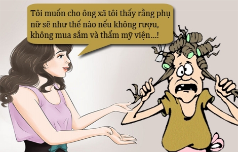 - Không sao cả! Tôi muốn cho ông xã tôi thấy rằng một người phụ nữ sẽ như thế nào nếu không rượu, không mua sắm và không thẩm mỹ viện…!