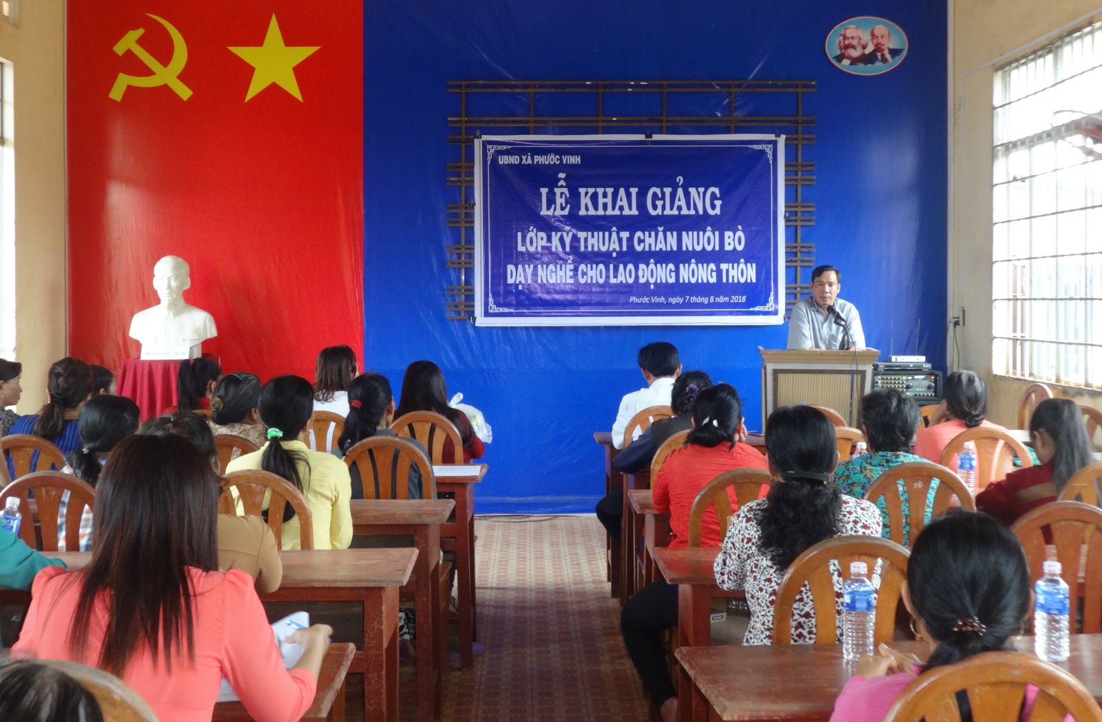 Chiều 7.8, tại Trung tâm Văn hóa thể thao – học tập cộng đồng xã Phước Vinh, Công ty cổ phần Doanh nhân Tây Ninh phối hợp với Hội LHPN xã Phước Vinh tổ chức lễ khai giảng lớp kỹ thuật chăn nuôi bò cho 35 học viên là người dân lao động tại địa phương.