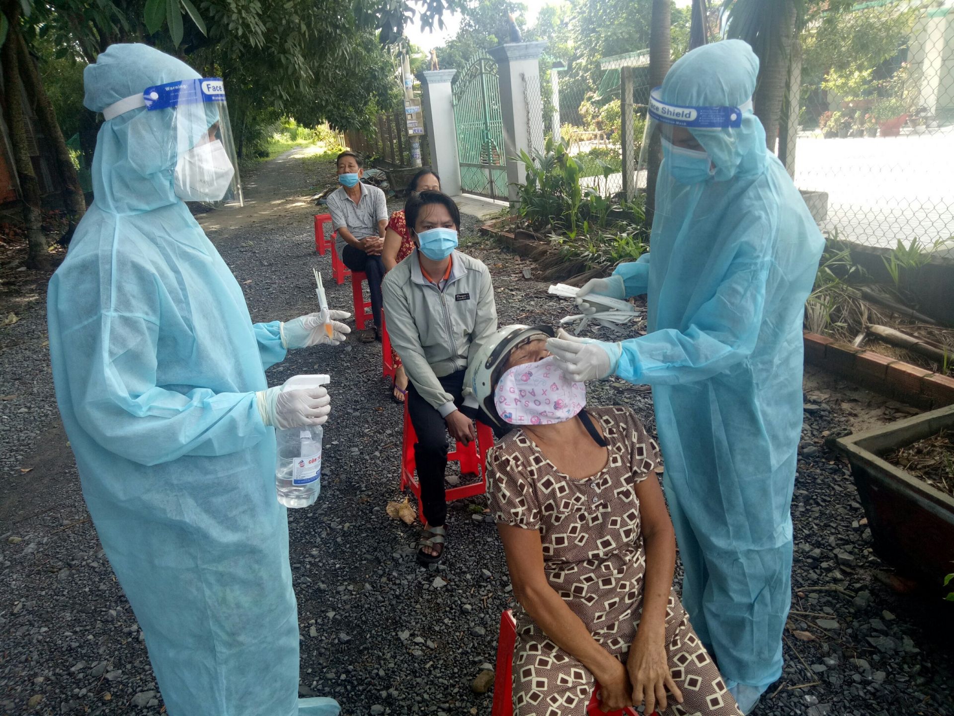 Lực lượng y tế chuẩn bị lấy mẫu xét nghiệm sàng lọc SARS-CoV-2 của người dân trên địa bàn phường An Hòa, thị xã Trảng Bàng.