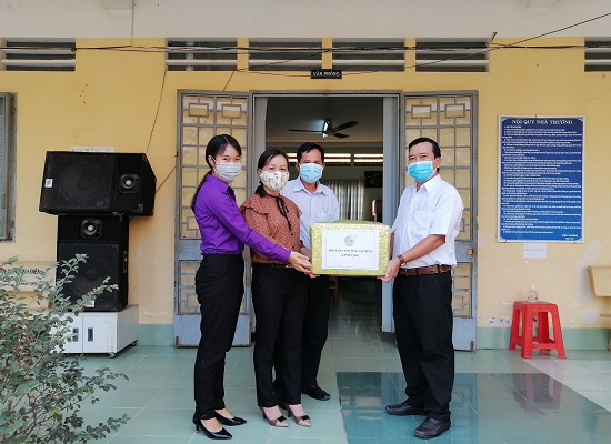 Số khẩu trang trên do Hội vận động mạnh thường quân ủng hộ vải và các hội viên, phụ nữ ở phường cùng chung tay may tặng, nhằm cùng nhà trường thực hiện các biện pháp phòng, chống dịch Covid-19, đảm bảo an toàn cho giáo viên, học sinh khi đến trường.