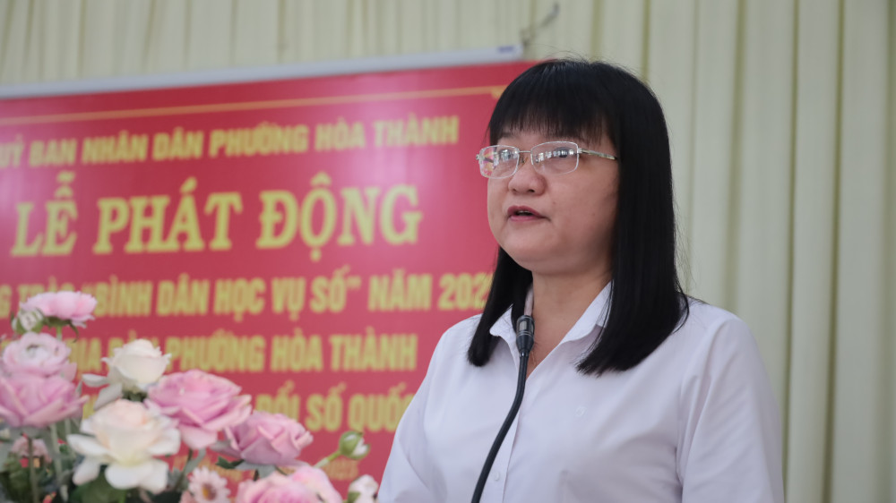 Phó Chủ tịch UBND phường Hòa Thành Võ Thị Hạnh phát động phong trào Bình dân học vụ số" năm 2025