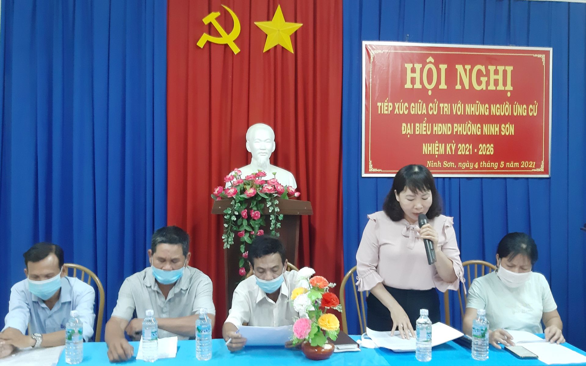 Tối 4.5, Ban Thường trực UB. MTTQ Việt Nam phường Ninh Sơn (thành phố Tây Ninh) phối hợp UBND phường tổ chức hội nghị tiếp xúc cử tri, vận động bầu cử đối với các ứng cử viên đại biểu HĐND các cấp nhiệm kỳ 2021- 2026 tại khu phố Ninh Thọ.