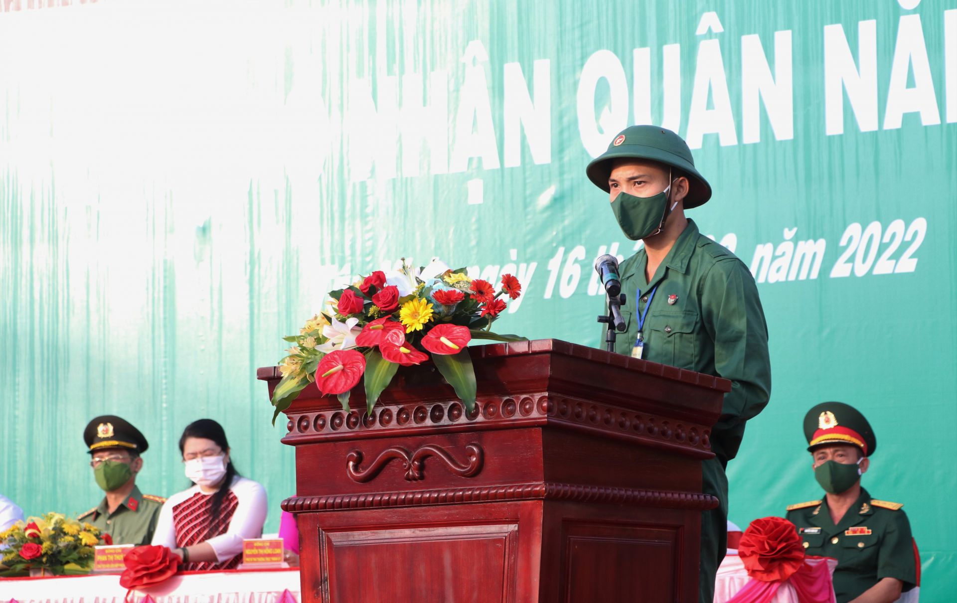 Đảng viên Nguyễn Ngọc Anh Duy (phường Ninh Thạnh) vinh dự đại diện cho hơn 200 thanh niên thành phố Tây Ninh nhập ngũ năm 2022 phát biểu tại lễ giao nhận quân