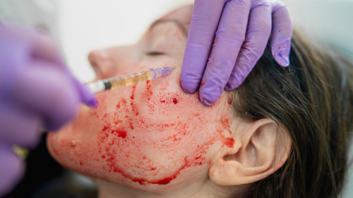 Phương pháp ma cà rồng lấy huyết tương giàu dinh dưỡng từ máu tiêm vào mặt với mục đích cải thiện làn da. Khách hàng dùng chính máu của mình.