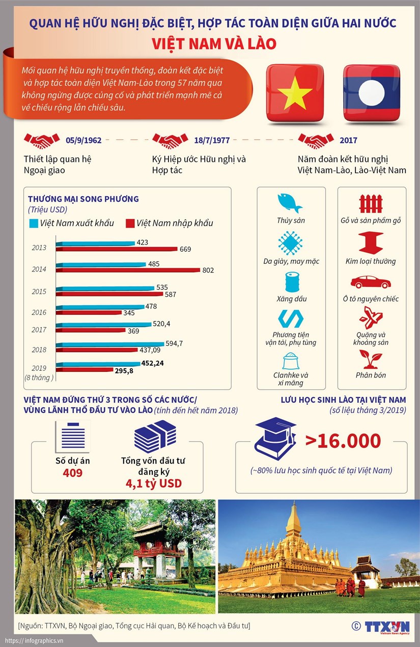 Việt Nam-Lào có bề dày truyền thống đoàn kết đặc biệt, mối quan hệ thủy chung giữa hai Đảng và nhân dân hai nước do Chủ tịch Hồ Chí Minh, Chủ tịch Kaysone Phomvihane, Chủ tịch Souphanouvong và nhiều thế hệ lãnh đạo, nhân dân hai nước dày công vun đắp đã được giữ gìn và phát huy như một tài sản vô giá của cả hai dân tộc.