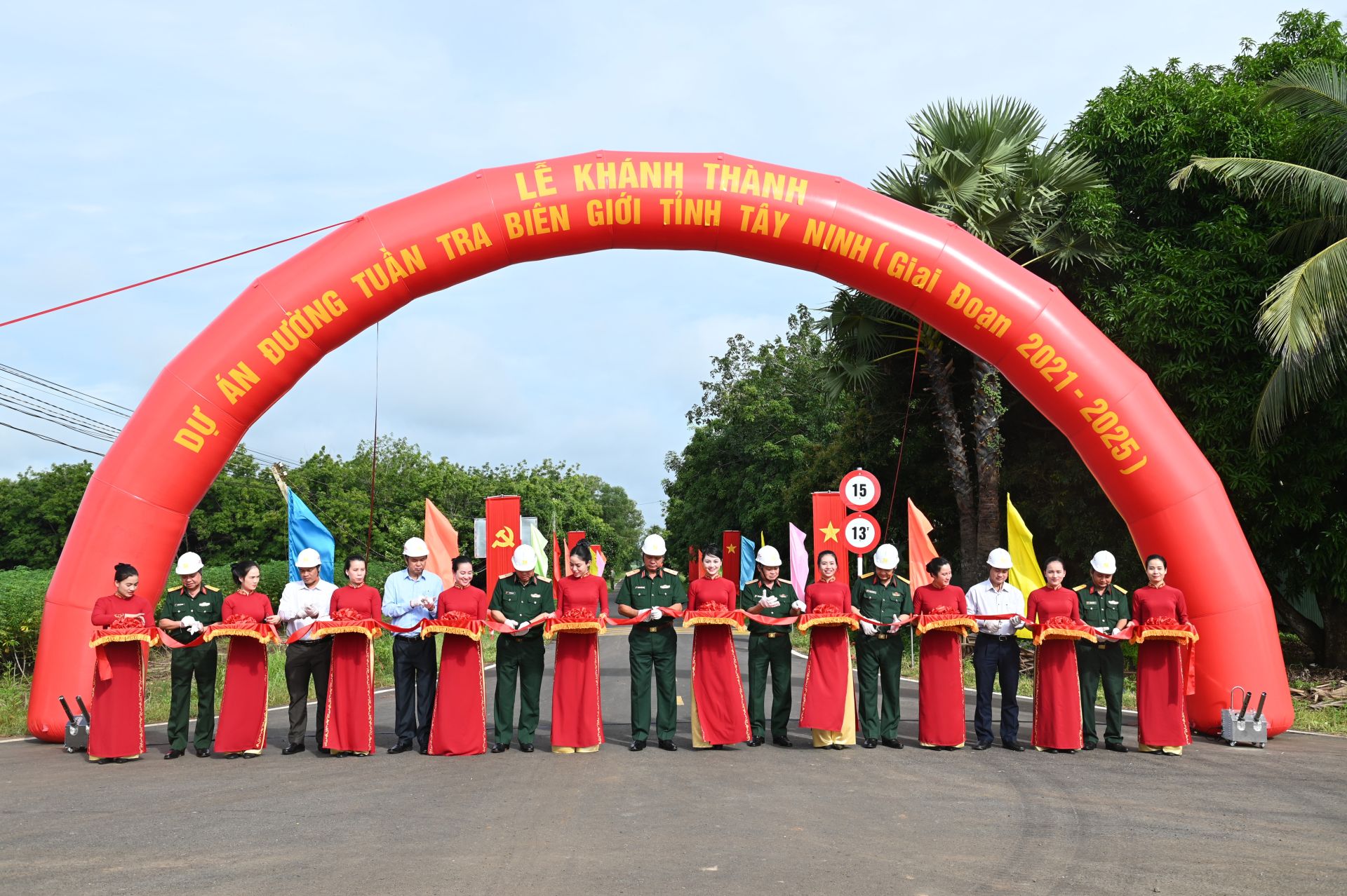 Tại buổi lễ, các đại biểu thực hiện nghi thức cắt băng khánh thành công trình Dự án đường tuần tra biên giới Tây Ninh, giai đoạn 2021- 2025. Từ nay, công trình chính thức đưa vào sử dụng, phục vụ công tác tuần tra, giữ gìn an ninh biên giới và góp phần phát triển kinh tế- xã hội của địa phương.