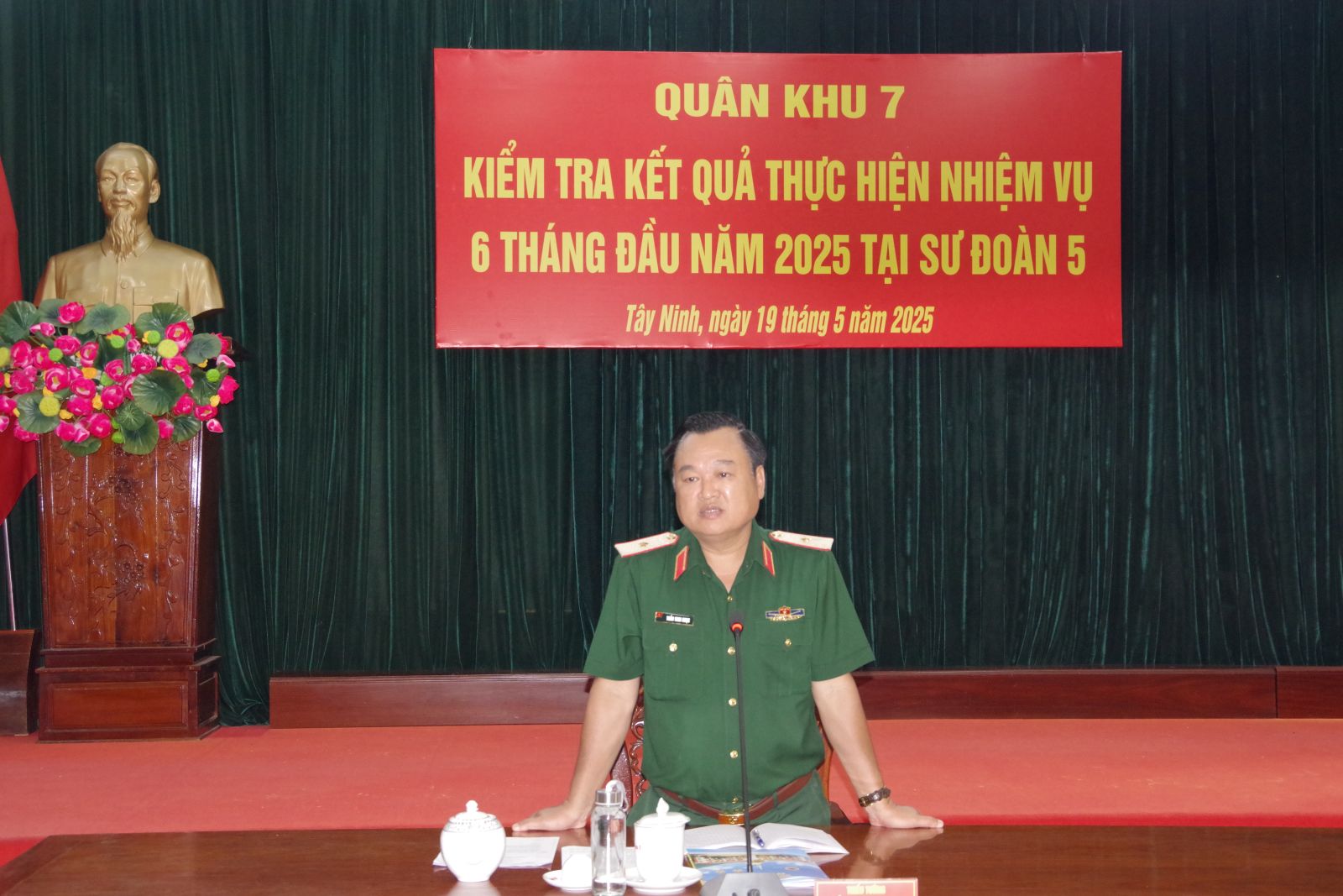 Ngày 19.5, đoàn công tác Quân khu 7 do Thiếu tướng Trần Vinh Ngọc- Chính uỷ Quân khu làm trưởng đoàn đã đến kiểm tra kết quả thực hiện nhiệm vụ 6 tháng đầu năm 2025 tại Sư đoàn 5.