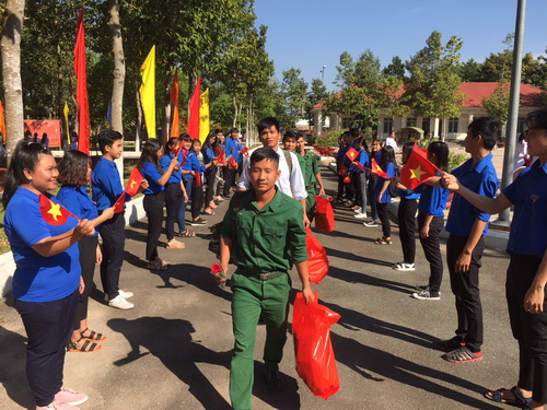 Đón quân nhân hoàn thành nghĩa vụ quân sự trở về địa phương.