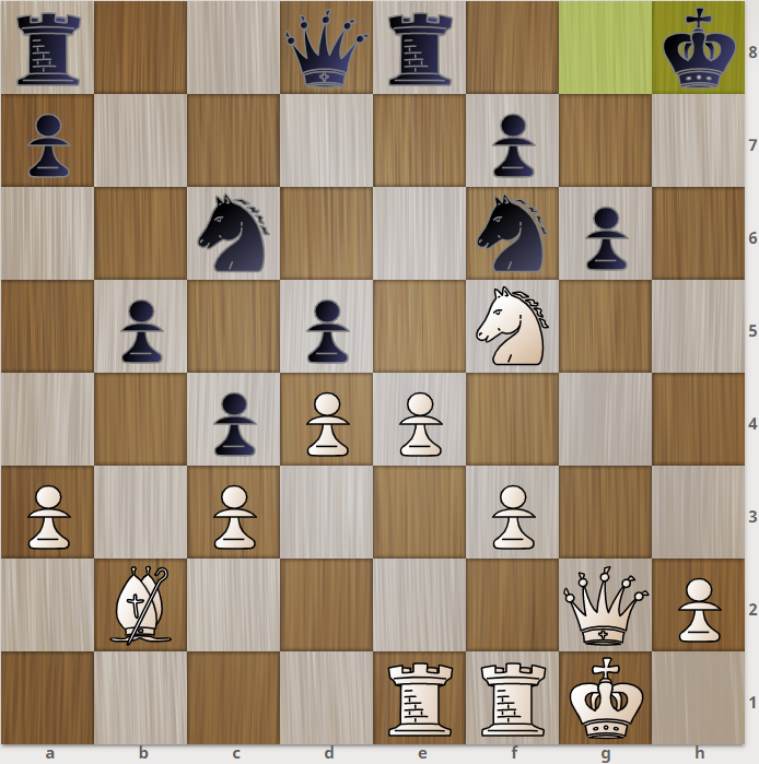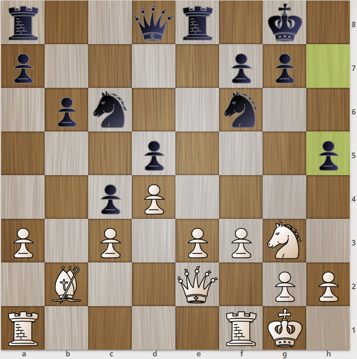 Sau 21...Kh8, Trắng ưu rõ ràng. Cột h được mở và Quang Liêm tìm cách để chồng xe và Hậu ở đó. Aleksandrov không thể chống đỡ, một phần do phân phối thời gian không hợp lý.