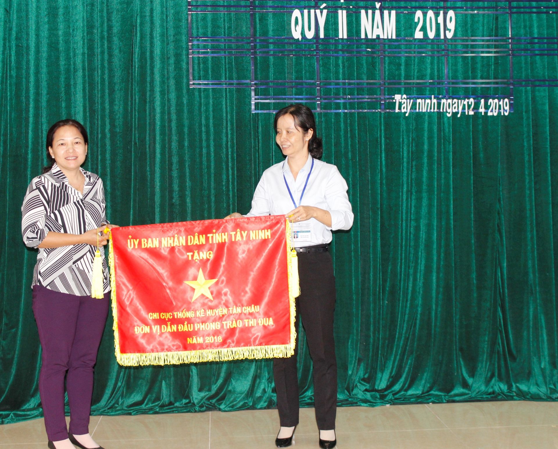 Trao Cờ “Đơn vị dẫn đầu phong trào thi đua” năm 2018 cho Chi cục Thống kê Tân Châu.