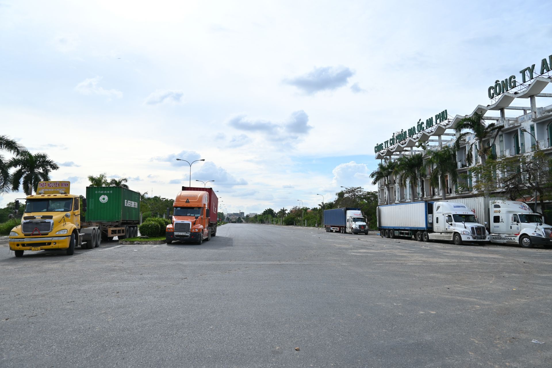 Phương tiện vận tải hàng hoá chờ thông quan ở cửa khẩu Mộc Bài.