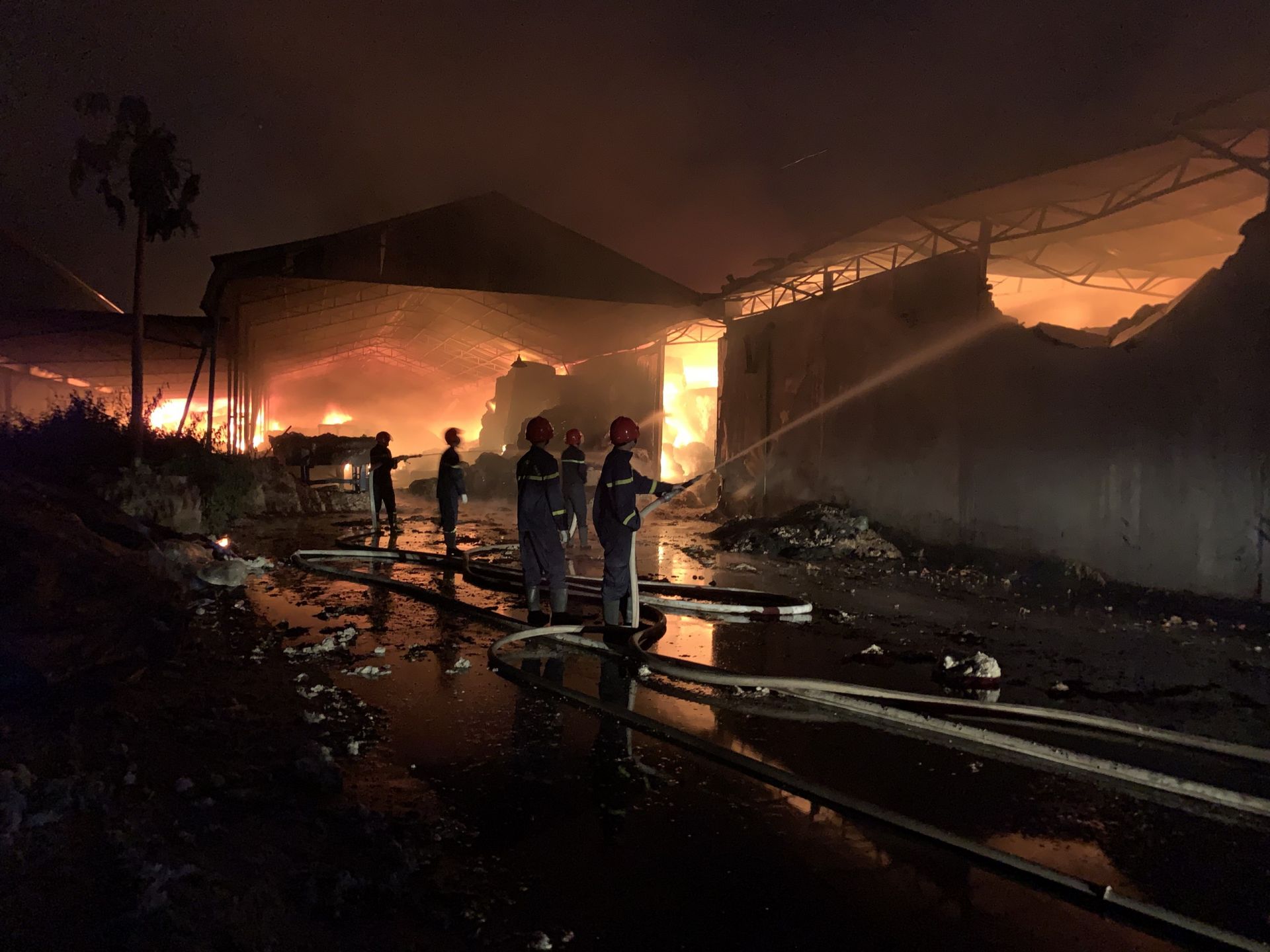 Lực lượng chức năng nỗ lực dập tắt đám cháy.