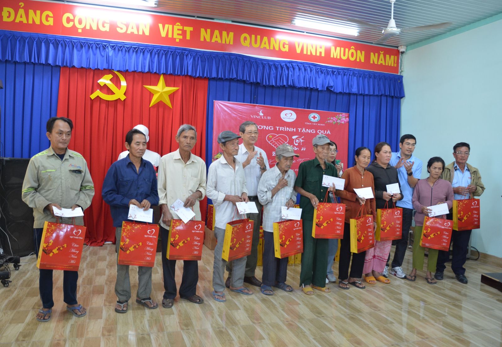 Sáng 11.1, tại UBND xã Tân Hiệp, Quỹ Thiện Tâm (Tập đoàn Vingroup) và Công ty cổ phần Vinclub phối hợp Hội Chữ thập đỏ tỉnh, Hội Chữ thập đỏ huyện Tân Châu tổ chức tặng quà tết cho người nghèo tại huyện Tân Châu.