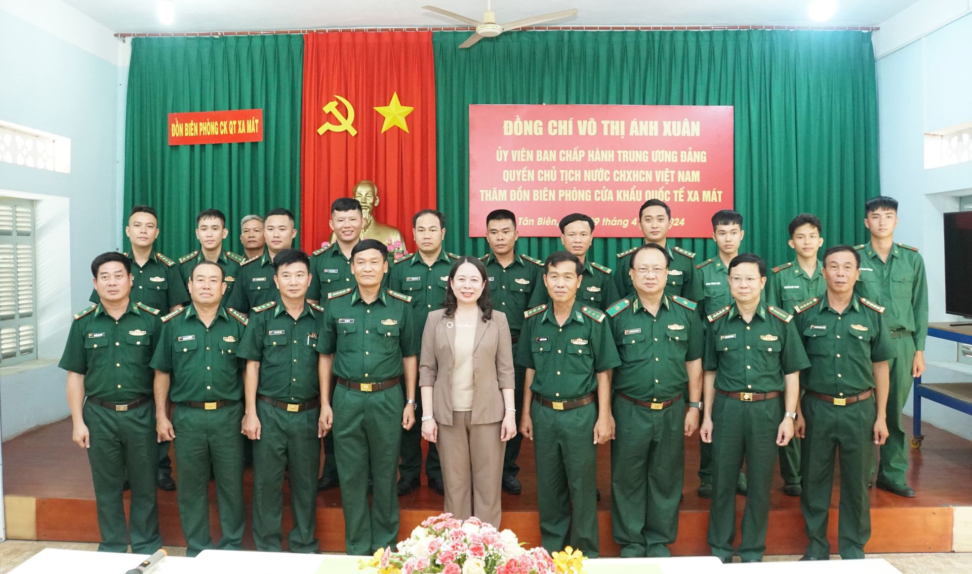 Quyền Chủ tịch nước Võ Thị Ánh Xuân chúc mừng, biểu dương thành tích, chiến công của CBCS Đồn Biên phòng CKQT Xa Mát nói riêng và lực lượng BĐBP Tây Ninh nói chung trong thời gian qua.