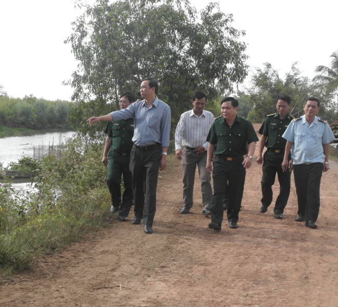 Đoàn công tác khảo sát hoạt động chống buôn lậu tại kênh đường xuồng, xã Phước Chỉ, huyện Trảng Bàng. |
