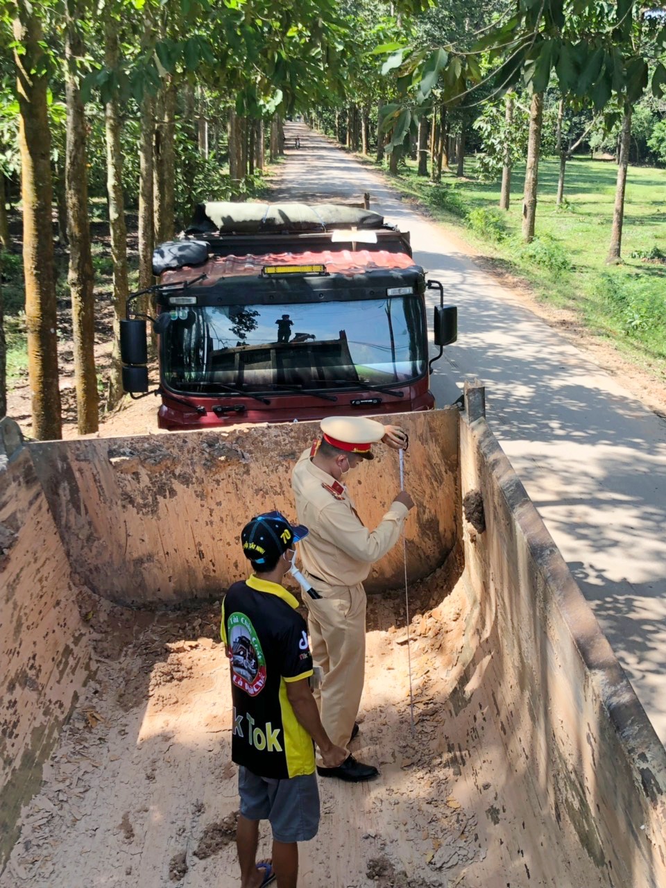 Cảnh sát giao thông kiểm tra kích thước thành thùng xe.