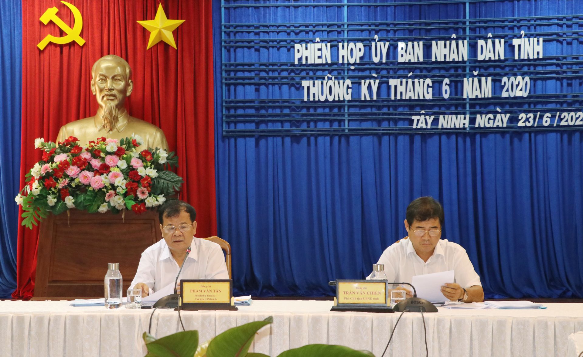 Ngày 23.6, UBND tỉnh tổ chức phiên họp trực tuyến thường kỳ tháng 6 năm 2020. Chủ tịch UBND tỉnh Phạm Văn Tân và Phó Chủ tịch UBND tỉnh Trần Văn Chiến đồng chủ trì hội nghị.