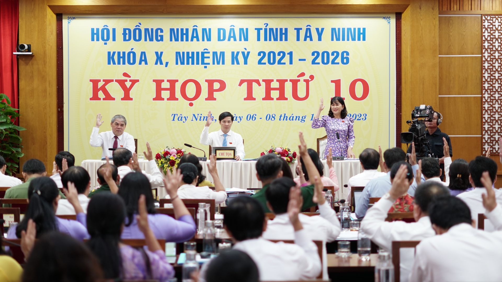 Sau 3 ngày làm việc khẩn trương, nghiêm túc với tinh thần dân chủ, trách nhiệm cao, kỳ họp thứ 10 HĐND tỉnh Tây Ninh khoá X đã hoàn thành nội dung chương trình đề ra. Chiều 8.12, HĐND tỉnh khoá X biểu quyết thông qua 29 nghị quyết và bế mạc kỳ họp.