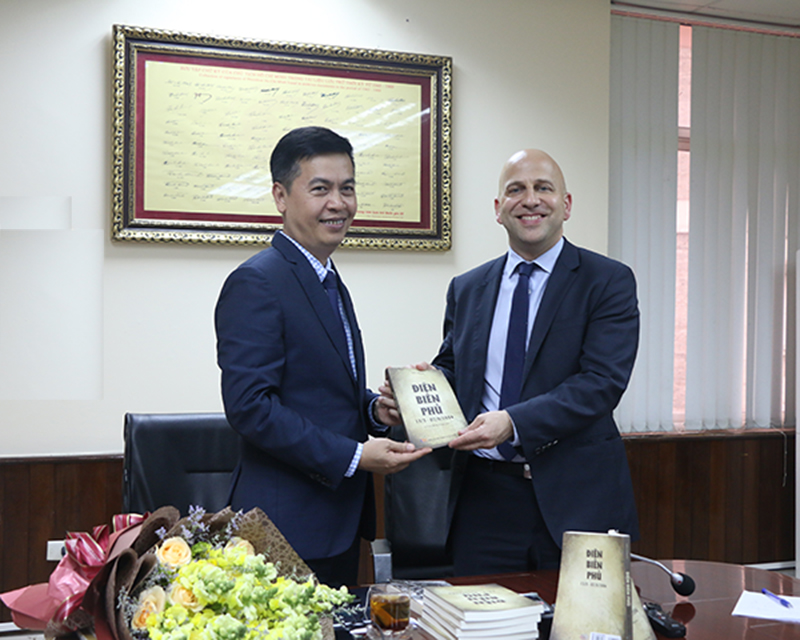 Cục trưởng Cục Văn thư và Lưu trữ Nhà nước Đặng Thanh Tùng tặng cuốn sách bản tiếng Việt cho tác giả Ivan Cadeau. Ảnh: Cục Văn thư và Lưu trữ Nhà nước
