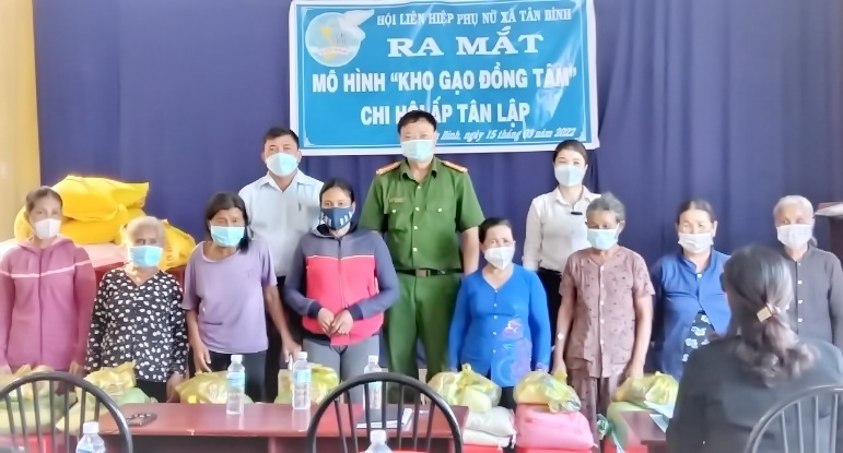 Tại buổi ra mắt, Hội Phụ nữ xã Tân Bình vận động mạnh thường quân hỗ trợ trao 458 kg gạo, 20 phần quà trị giá 10 triệu đồng cho hội viên, phụ nữ thuộc hộ nghèo.