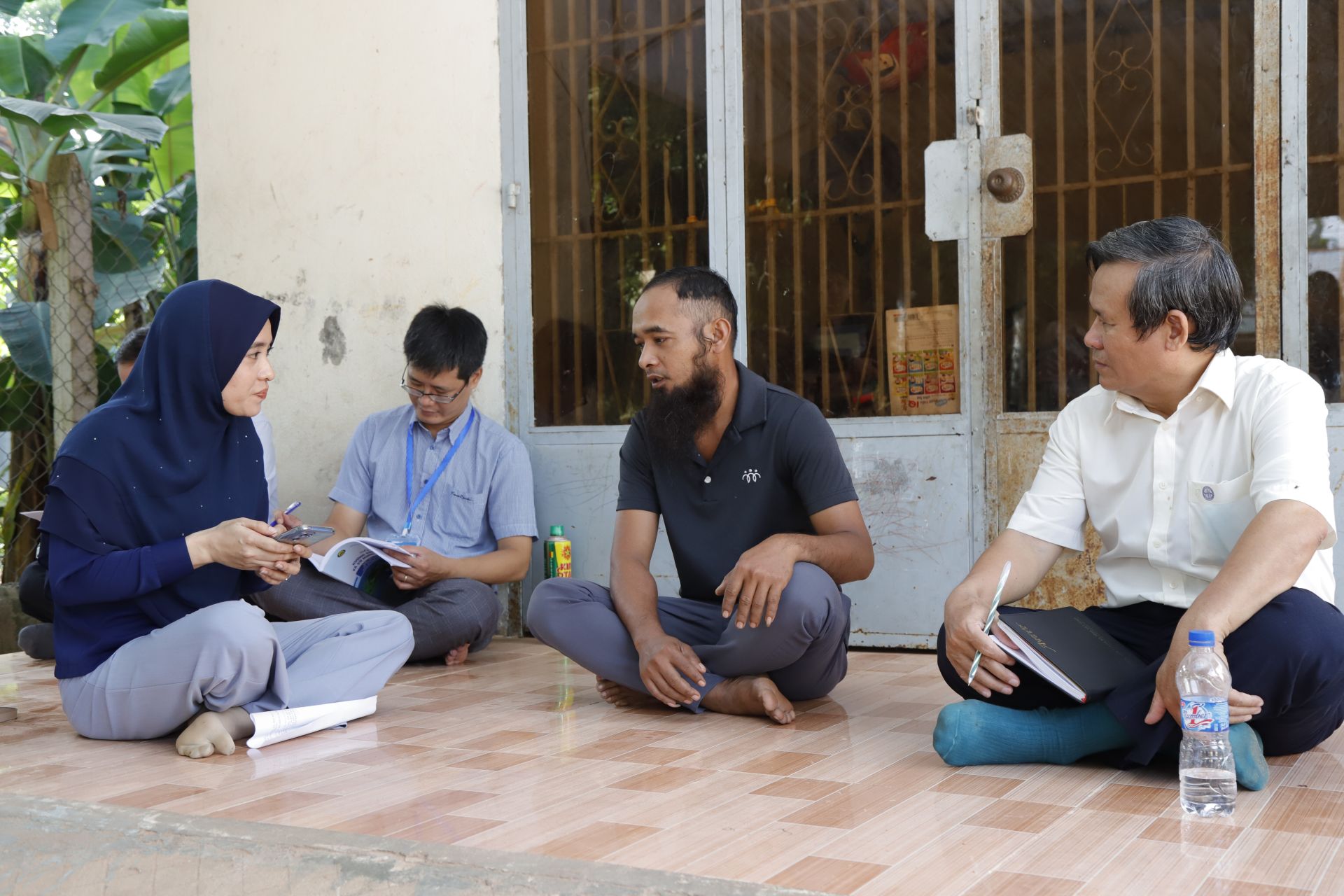 Ông Cù Sỹ Cương- Phó Cục trưởng Cục Thống kê Tây Ninh (bìa phải) giám sát công tác điều tra, thu thập thông tin tại ấp Chăm, xã Suối Dây.