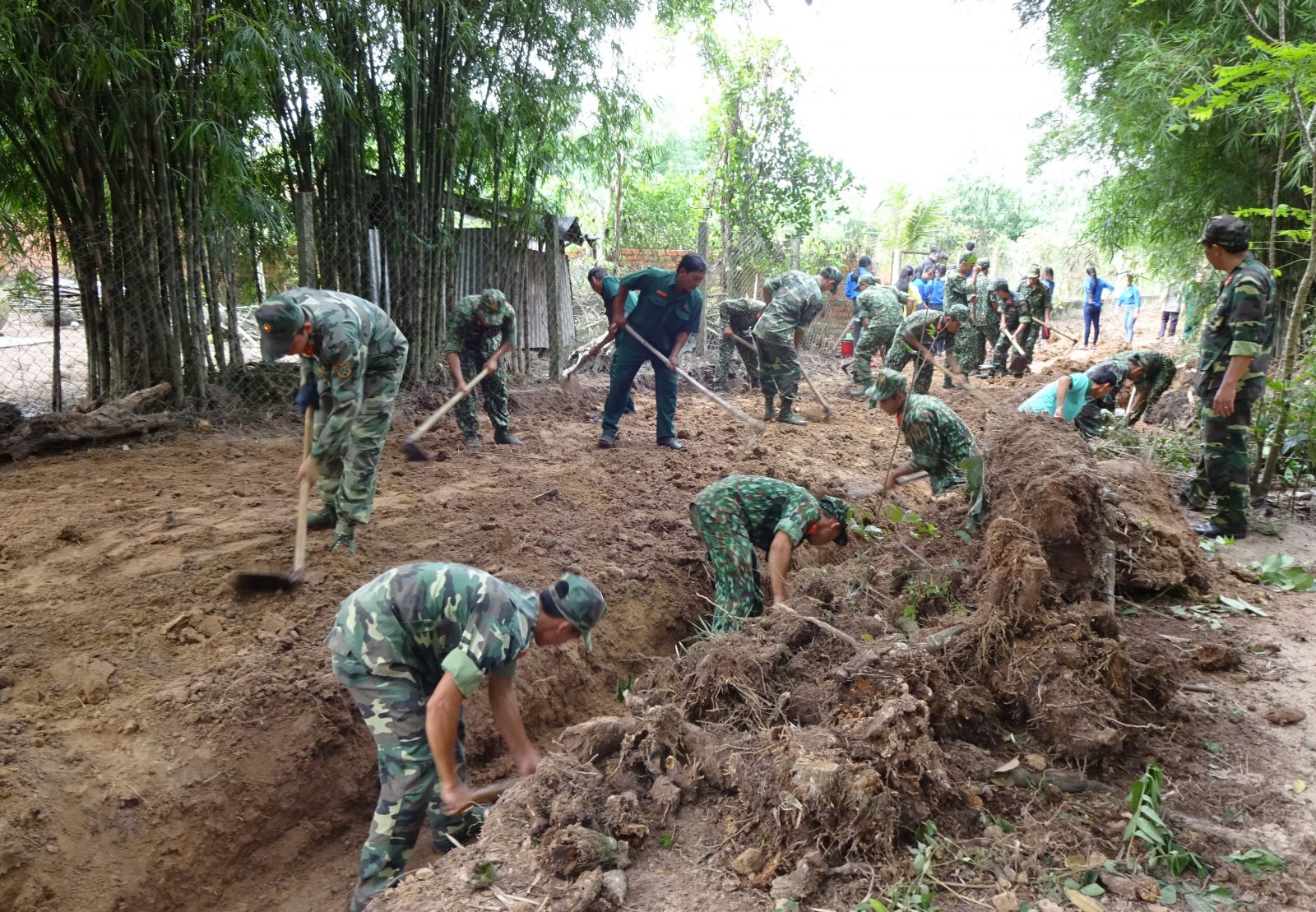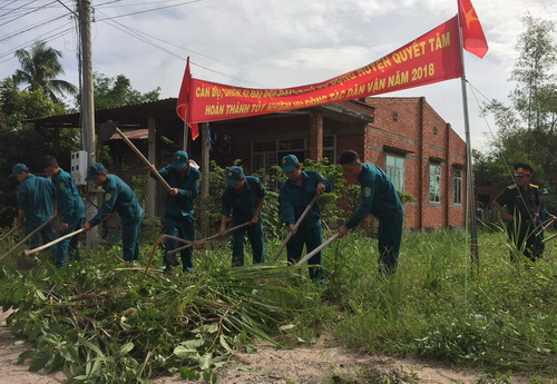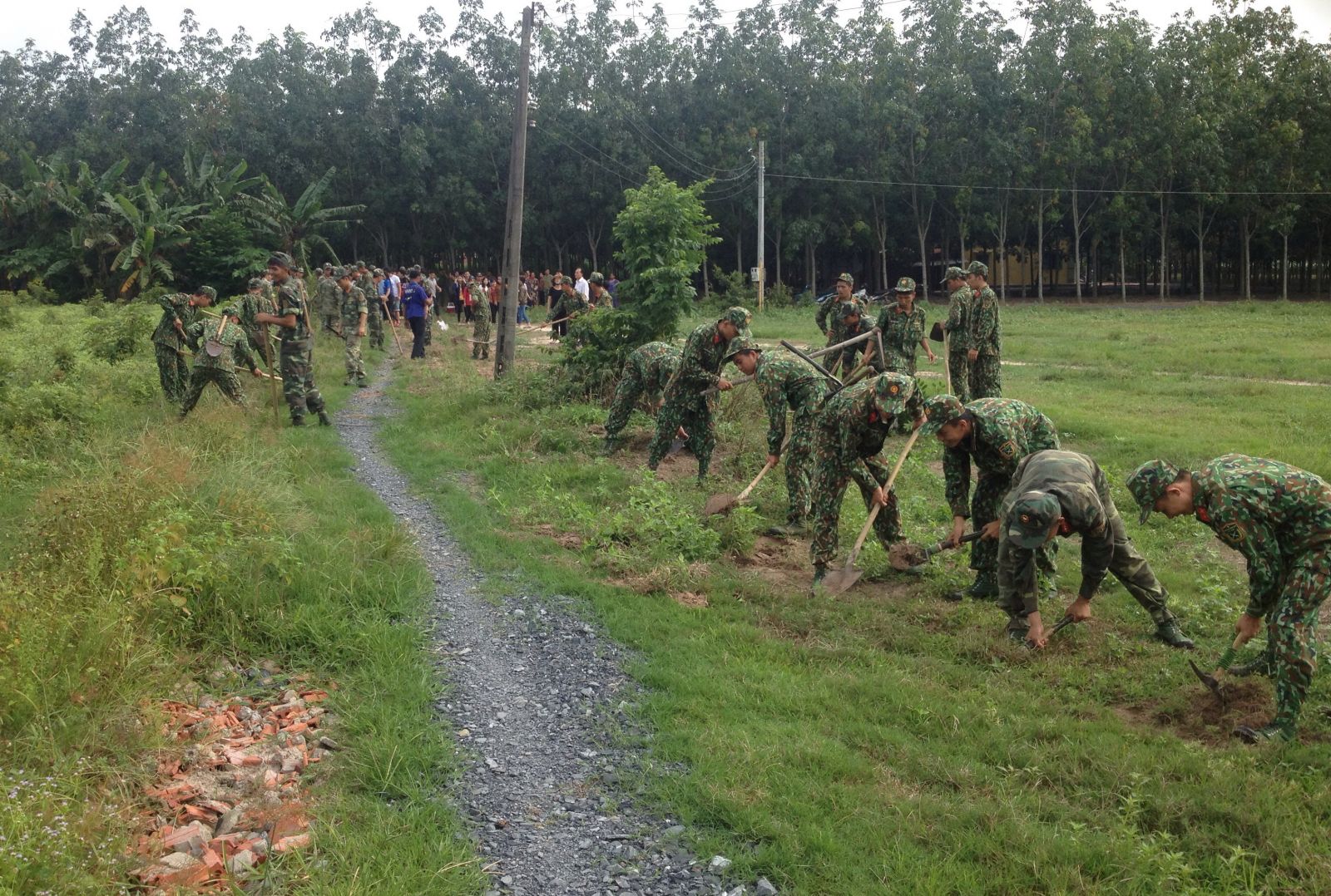 Ngay sau lễ ra quân, Đội K71 Bộ CHQS tỉnh cùng lực lượng dân quân tự vệ và người dân tiến hành đào đắp, nâng cấp tuyến đường nông thôn ở ấp Cẩm An có chiều dài 254 mét, với tổng kinh phí thực hiện 20 triệu đồng.